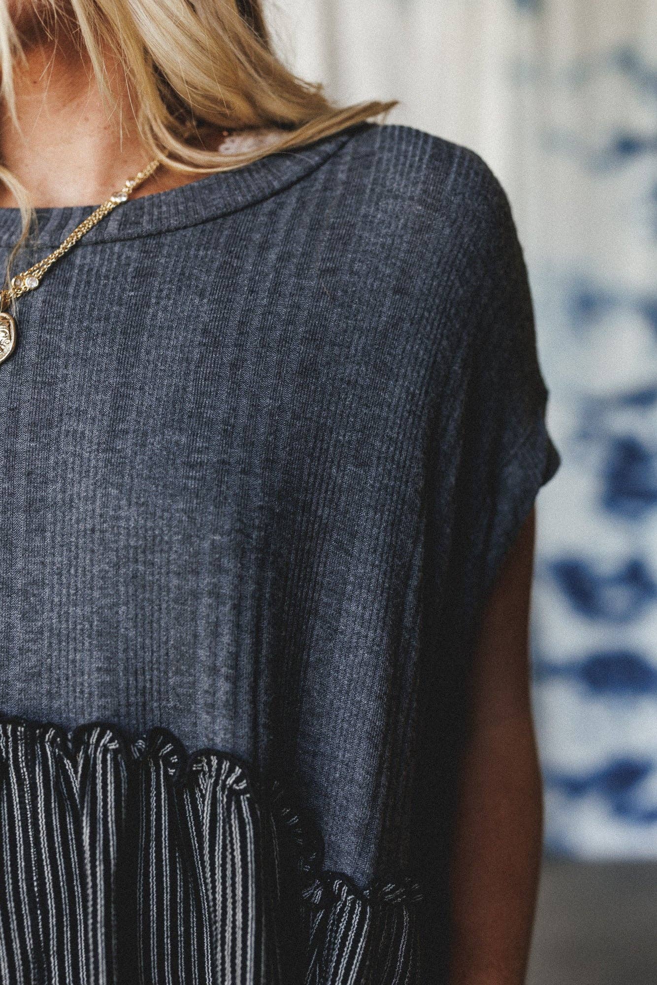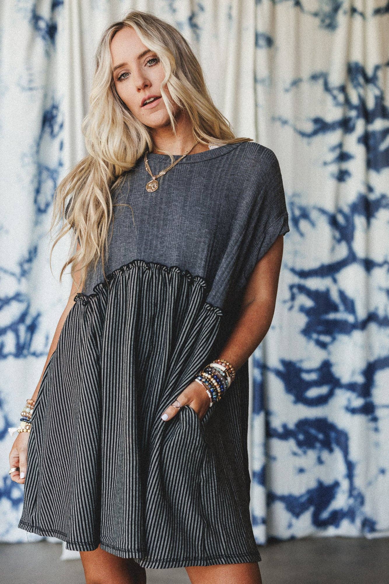 This boho babydoll dress looks amazing with tall boots. * Short sleeves * Round neckline * High waist Model is 5'8" and wearing a size Small.